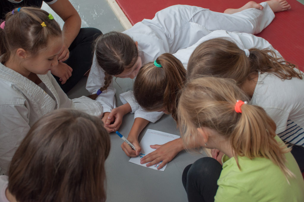 Děti si u nás užijí zábavu nejenom při cvičení, ale také se naučí mnoho zajímavých věcí. Učíme se jíst hůlkami a hrajeme spoustu her. Rozvíjíme postřeh, rovnováhu, sílu a snažíme se být celkově šikovnější. O víkendech a prázdninách se učíme například házet šurikeny, sekerkou, míčkem, střílet z luku a třeba i používat jídelní hůlky. Naše tělocvična je sice v pátém patře, ale „Ve zdravém těle, je zdravý duch“ a tak i na schodech může být zábava a soutěživost.